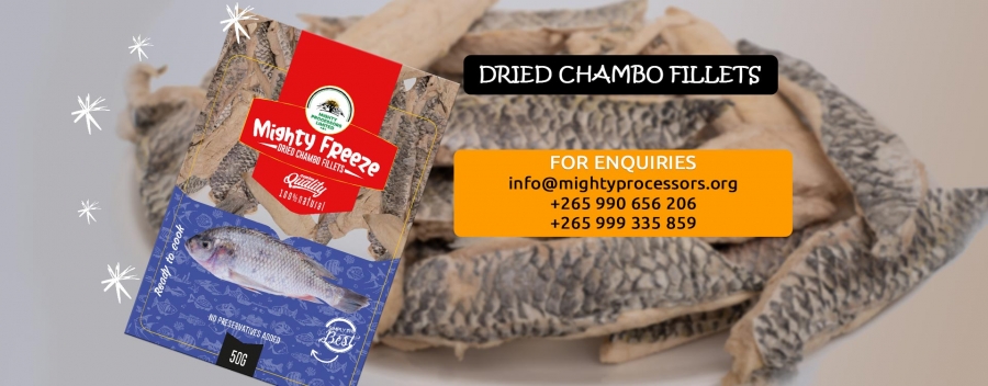 Malawian chambo is a type of freshwater fish in the Tilapia family that is tasty and only found in Lake Malawi. Mighty Processors dries Chambo-Tilapia to ensure that it reaches others parts of the world while maintaining its freshness and nutritional value. You can have this Malawian delicacy and enjoy the Malawian fish flavor while away from Malawi.
